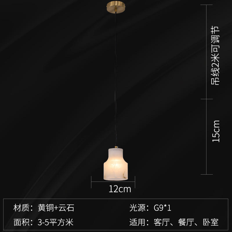 Luxury Minimalist All-Copper Spanish Marble Pendant Light New Chinese Style Bar Counter for Bedroom Dining Room Living Space