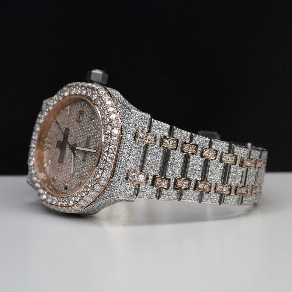 Luxury Miyota Rose Gold Moissanite Business Watch Quartz Movement Fully Iced Stainless Steel Band Analog Charm Limited Edition