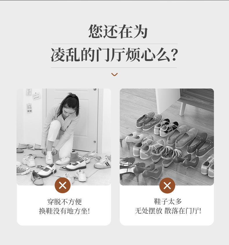Advantage:Two-in-one shoe rack + stool