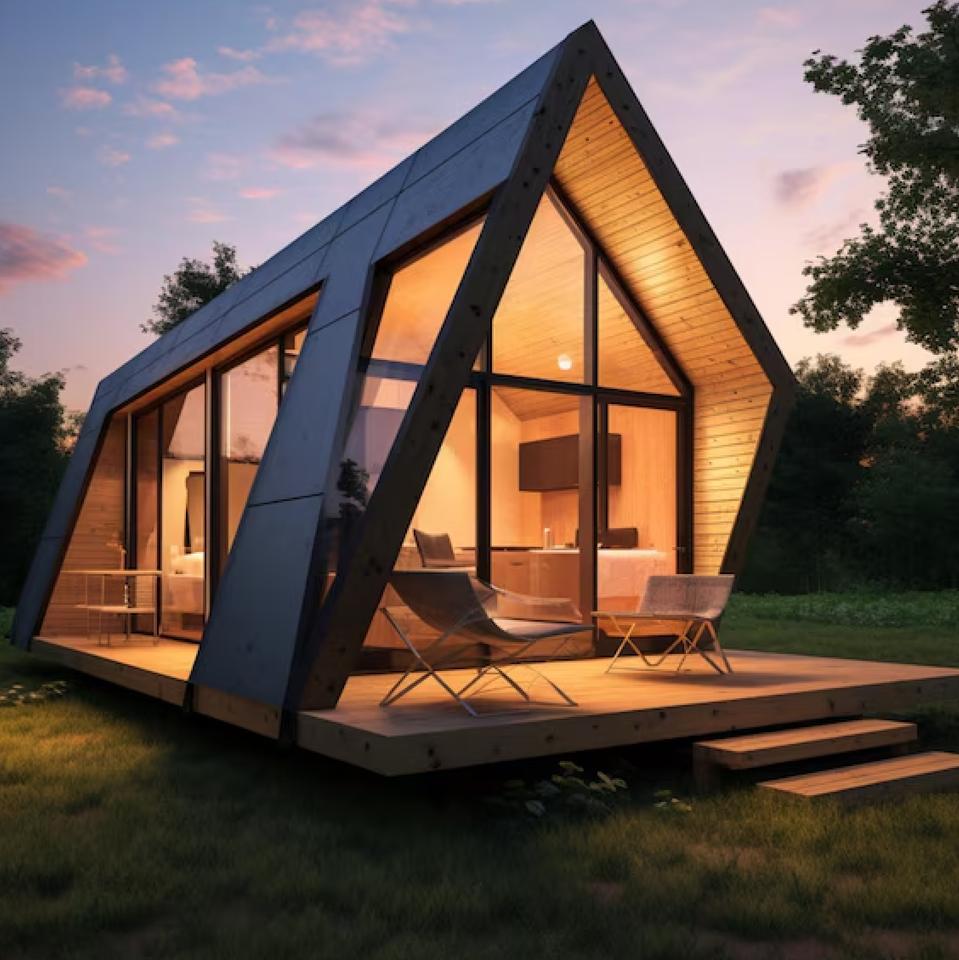 Luxury Modern 2025 Triangular Modular Wooden Prefabricated House Small Residential Villas for Office Bedroom Kitchen