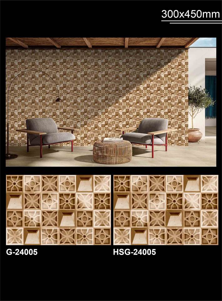 Luxury Modern 300x450 mm Glossy Porcelain Tiles Ceramic Wall Tile for Living Room and Bathroom Floor Decoration From India