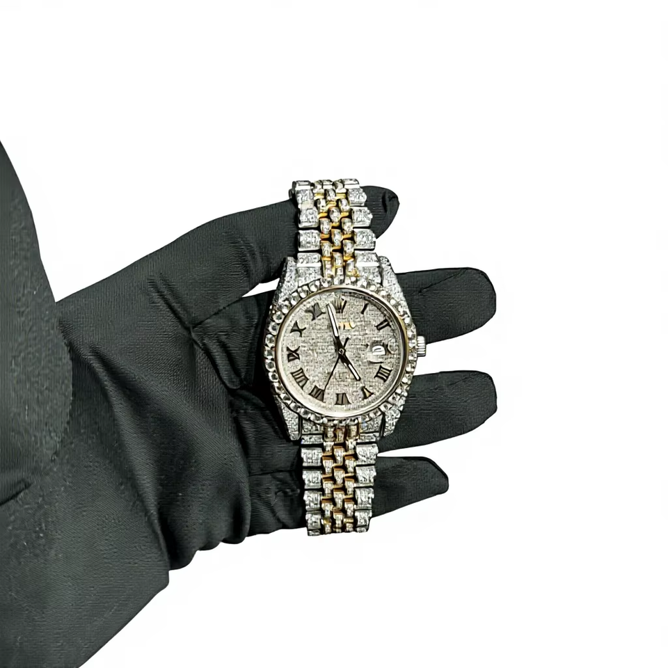 Luxury Modern Alloy Stainless Steel Fashion Men's MIYOTA Quartz Analog Wrist Watch Roman Scale Diamond-Encrusted Charm Glass