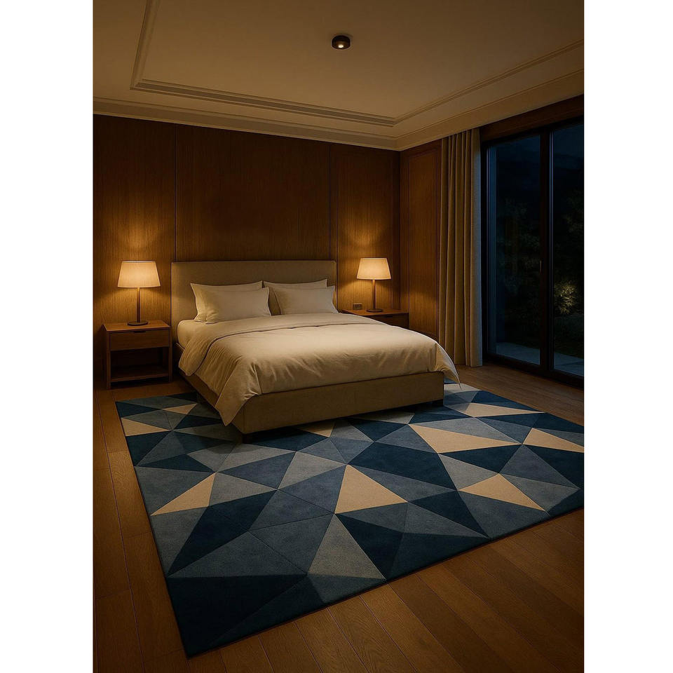 Luxury Modern Blue Geometric Hand Tufted Area Rug Floor Carpet for Home Decor for Living Room Christmas Gift Picnic Use