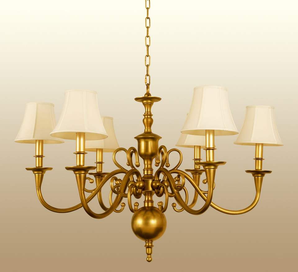 Brass 6 Arms Chandelier