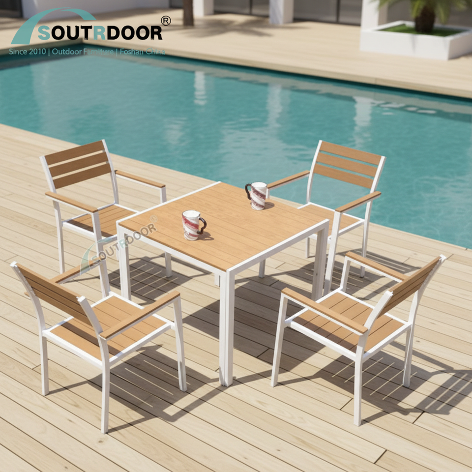 Luxury Modern Brown Garden Poly Dining Wood Furniture Outdoor Aluminum Patio Furniture Warehouse Eco-Friendly Clearance