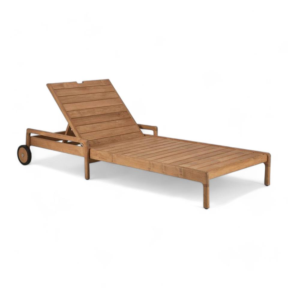 Luxury Modern Classic Design Teak Wood Outdoor Garden Sun Lounger Quality Patio Arm Exterior Sunbed for Hotels Villas Courtyards