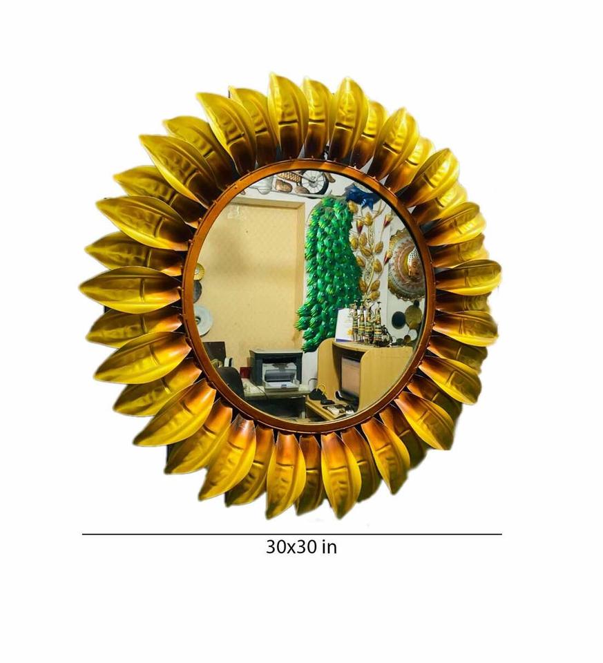 Luxury Modern Decorative Wall Mirror with Metal Leaf Frame Adjustable Round Design in Rose Gold for Bathroom and Living Room