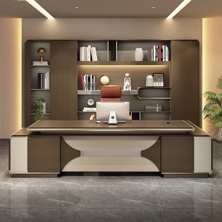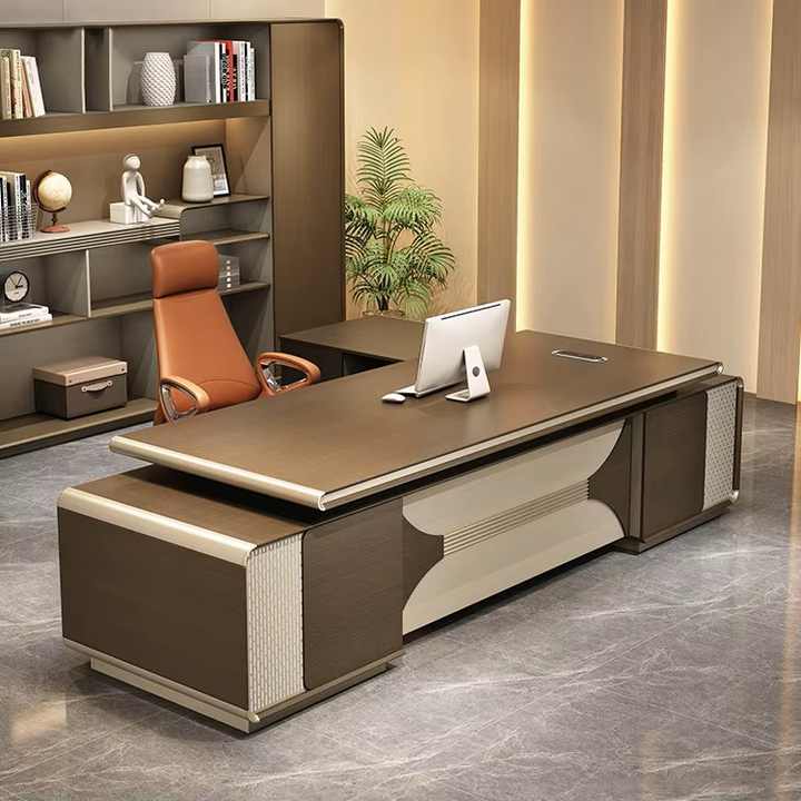 Luxury Modern Design L-Shaped Executive Office Desk with Ergonomic Commercial Leather Manager Chairman CEO Chair for Home Use