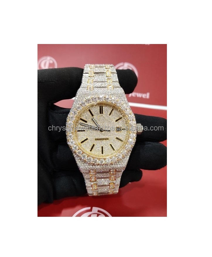 Luxury Modern Diamond & Moissanite Watches Elegant Stainless Steel Band High Quality Glass Dial Window Indian Supplier