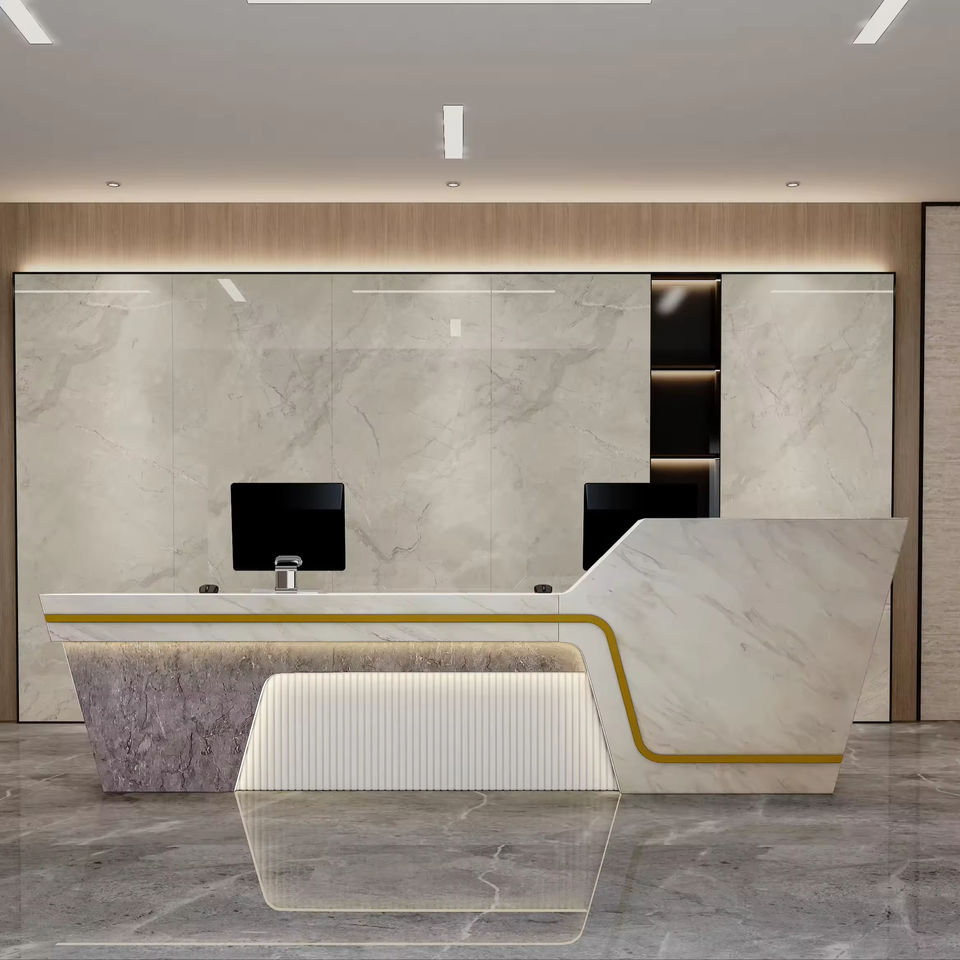 Luxury Modern Extendable Extra Large PETG Plastic Reception Desk with LED Lighting Design for Hotel Mall Office Use