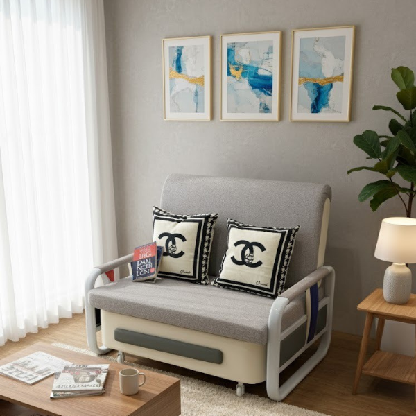Luxury Modern Folding Sofa Bed Leather Fabric Convertible Couch Easily Installed For Small Living Room Giuong gap Vietnam
