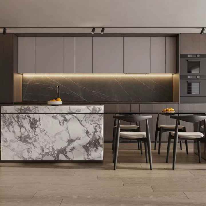 Luxury Modern Full Kitchen Storage Units Solid Surface Corner Wall Cabinets Custom Size Featuring Melamine Board Dining Faucet