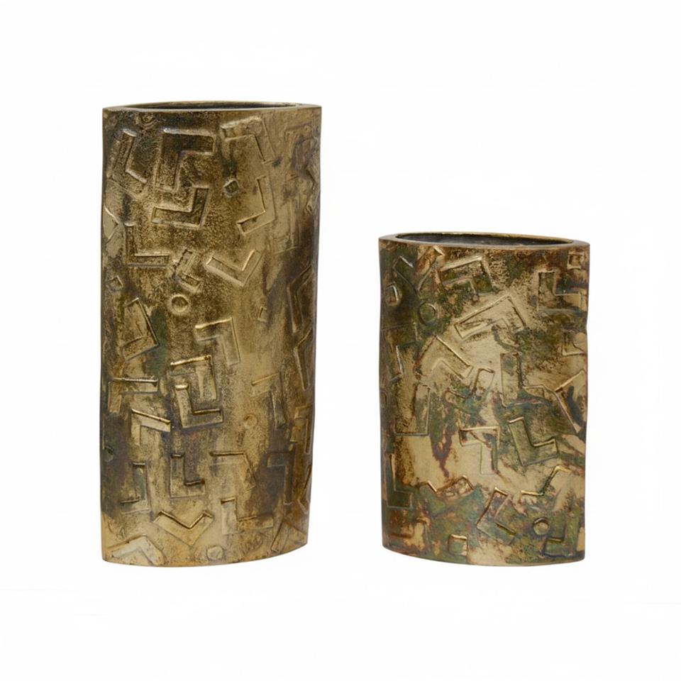 Luxury Modern Geometric Textured Metal Sculpture Tabletop Ornament Abstract Nordic Home Accent Vessel Geometric Embossed Decor
