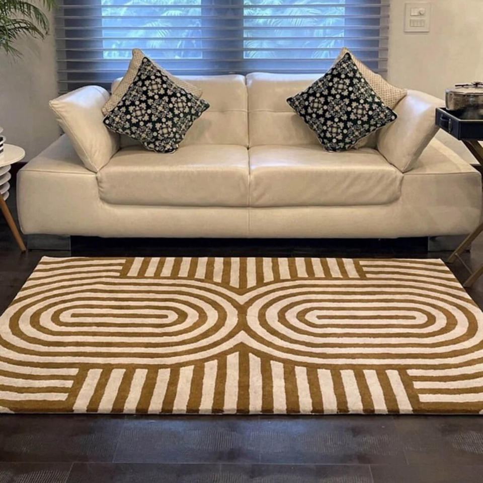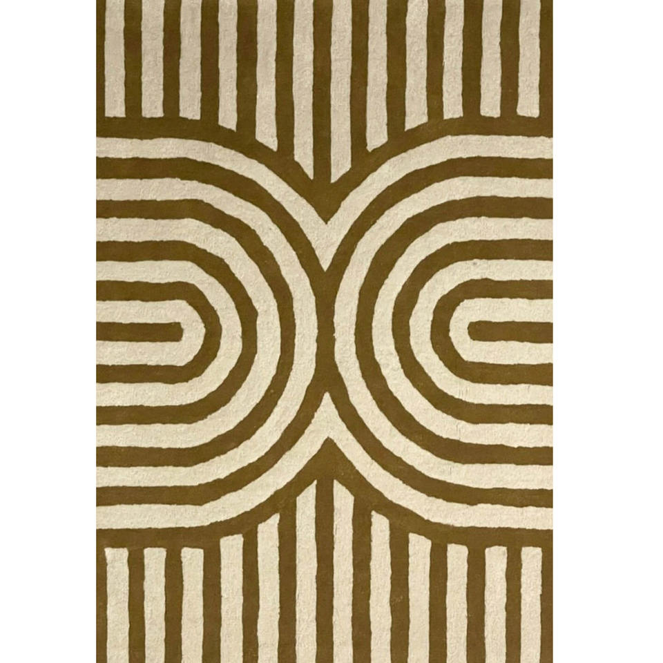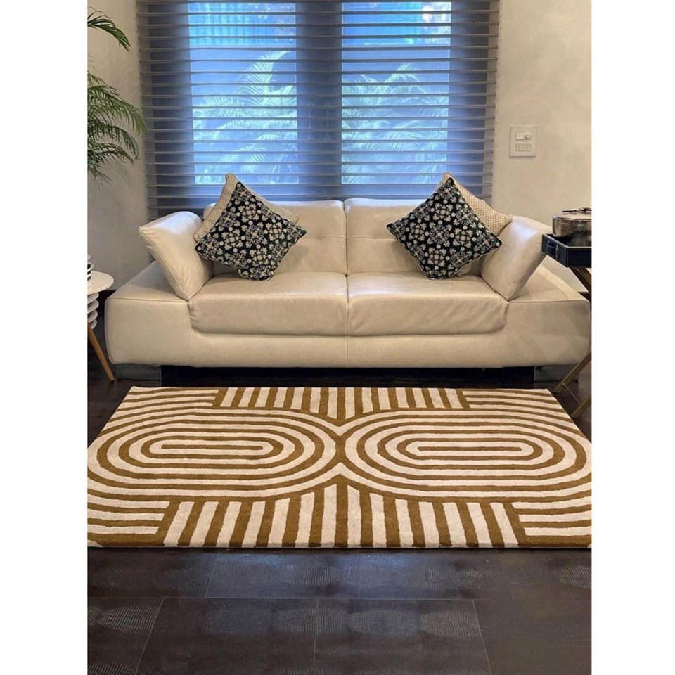 Luxury Modern Geometric Wool Rug Hand-Tufted Mustard & Ivory Carpet for Living Room