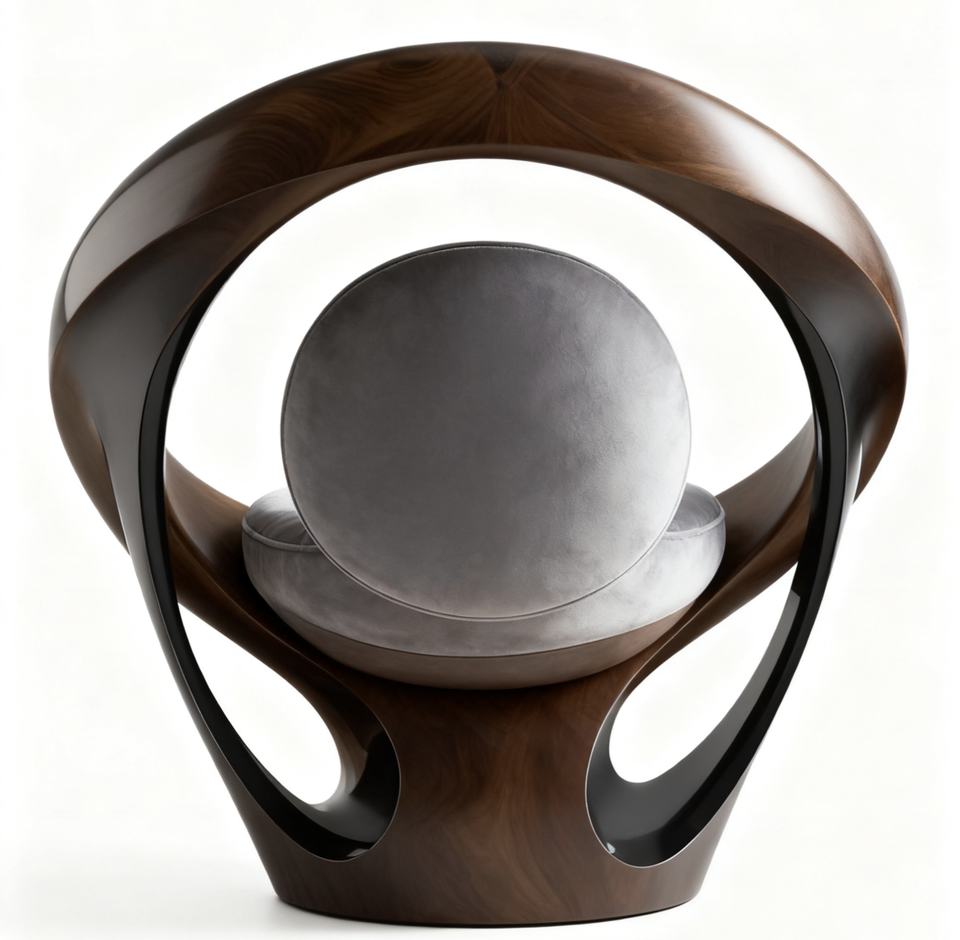 Artistic sculptural frame,ergonomic circular shape, removable cushion, handcrafted solid wood constructionfeature