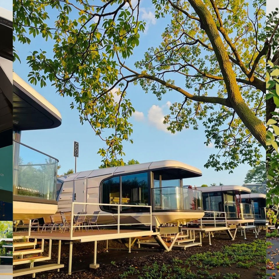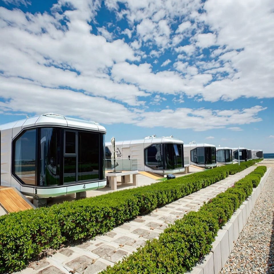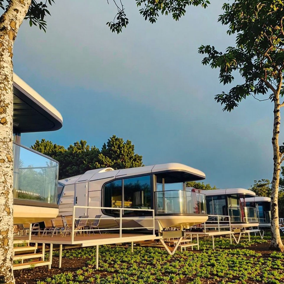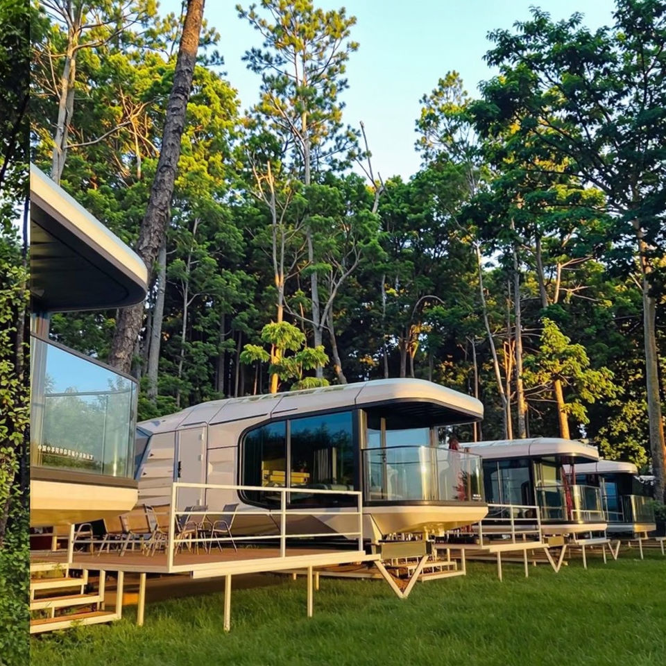 Luxury Modern Steel Structure Outdoor Portable Mobile Glamping Space Capsule Resort Hotel Tiny House Fast Install White