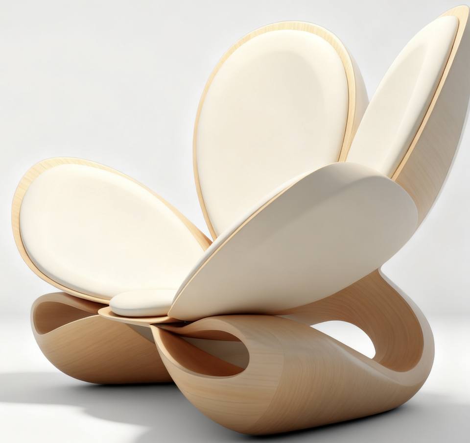 Luxury Modern Petal Lounge Chair with Solid Ash Wood Frame for Apartment & Villa Use