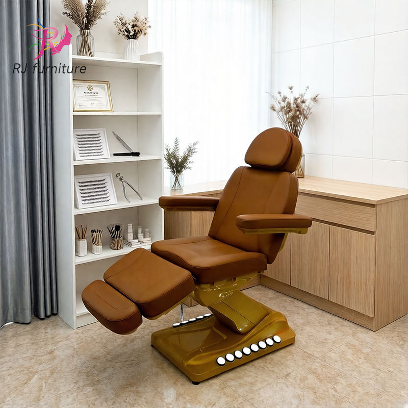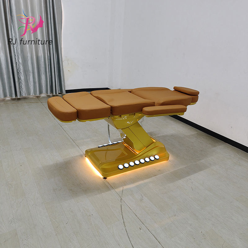 Luxury Modern Salon Furniture Gold 3 Motor Metal Curved Electric Massage Facial Bed with for Eyelash Extensions