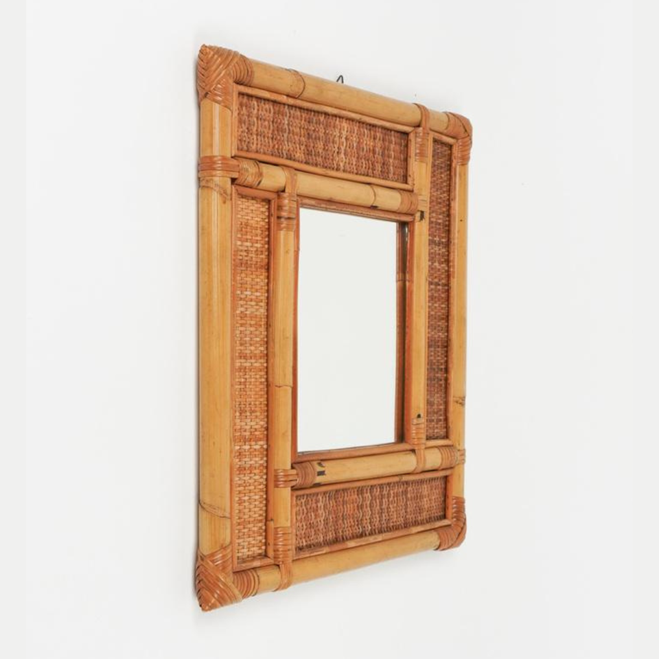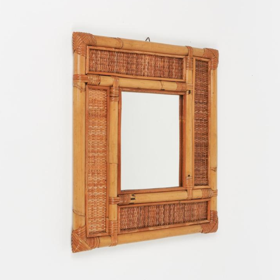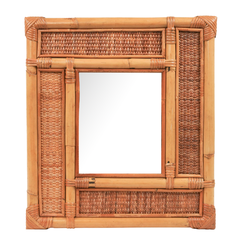 Luxury Modern Square Shape Wall Mirror Natural Rattan Best Style Compact Design for Home Living Room Bathroom Makeup Box Packed