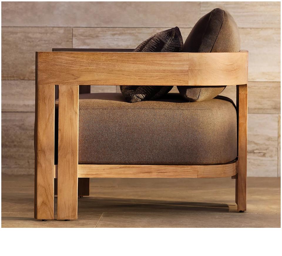 Luxury Modern Teak Outdoor Sofa Chair One Seat Solid Teak Wood Frame and Upholstery Fabric Chair Sofa Lounge Sofa Chair