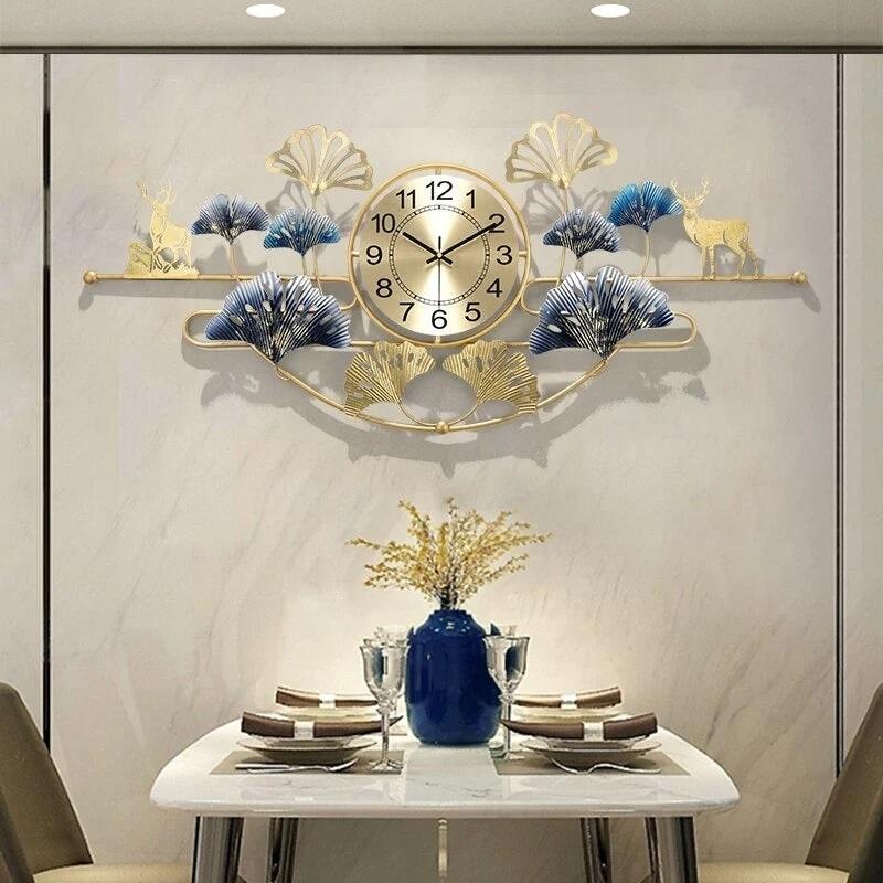 Luxury Modern Vintage Living Room Flower Decor Large Quartz Clocks Metal Wall Art Decoration Wall Clock for Bedroom & Office