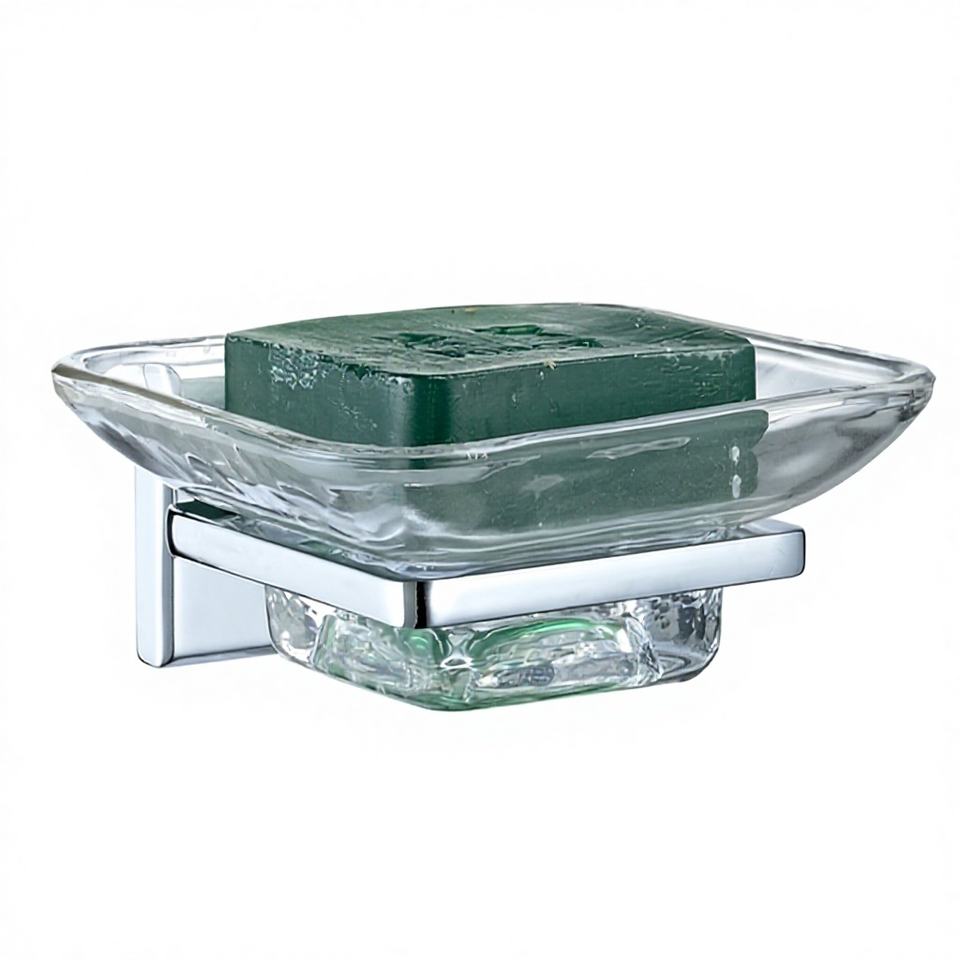 Luxury Modern Wall-mount Soap Dish Chrome Zinc Alloy Base Satin Glass Design