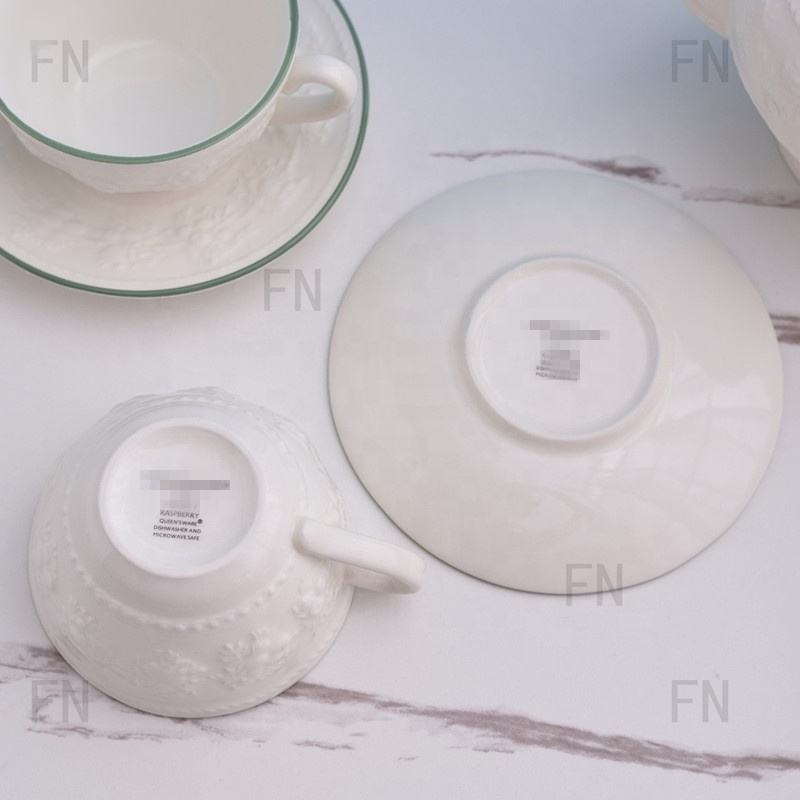 Luxury Modern White Embossed Design Tea Set Coffee Set Pot Cup and Saucer