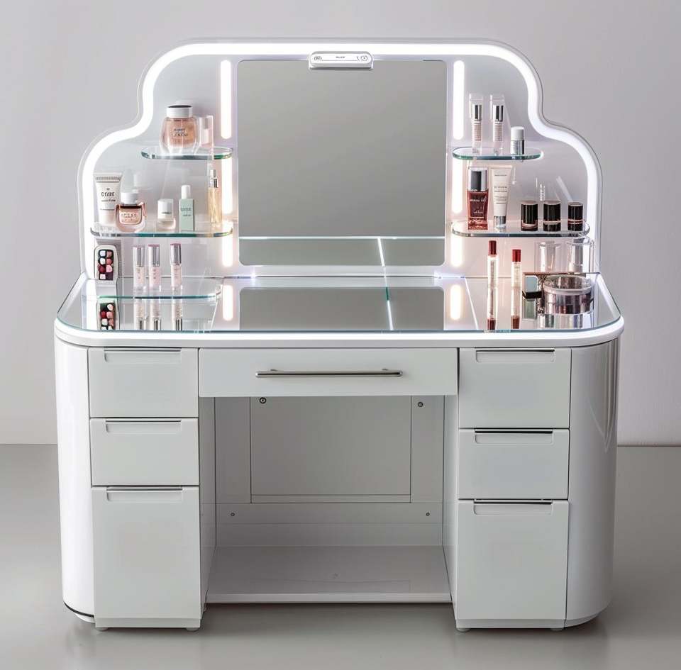 Luxury Modern White Solid Wood Bedroom Makeup Vanity Table Set with Lighted Mirror and Storage