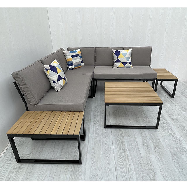 Luxury Modern Outdoor L-Sectional Teak Wood Garden Sofa Set with Acacia Cushion for Hotels Villas Poolside Areas Living Rooms