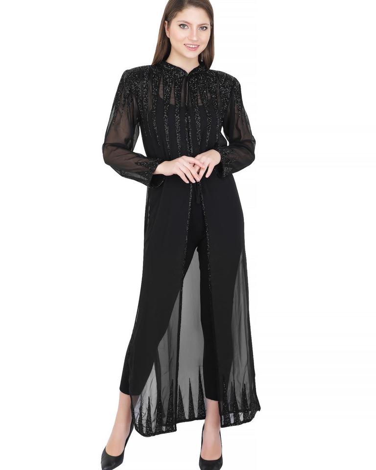 Luxury Modest Open Front Kaftan Abaya Hand-Beaded Embroidered Crepe Wedding Dress for Women with Hot Crystal Appliques Sale