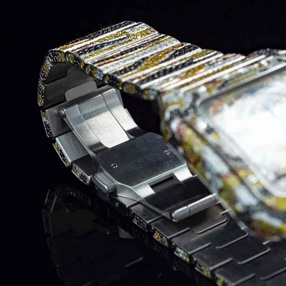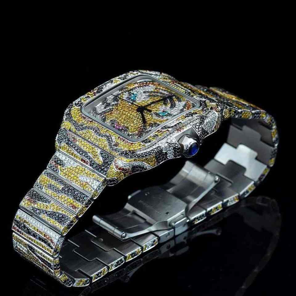 Luxury Moissanite & Black Diamond Stainless Steel Leather Strap Water Resistant Analog Business Casual Watch
