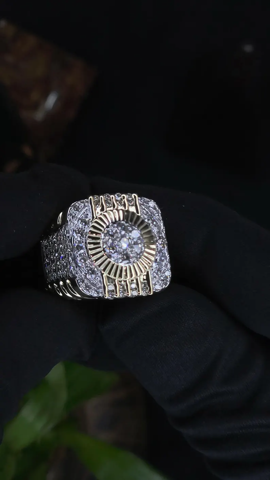 Luxury Moissanite Diamond Round Halo Ring In 925 Sterling Silver Bold Hip Hop Statement Ring For Men