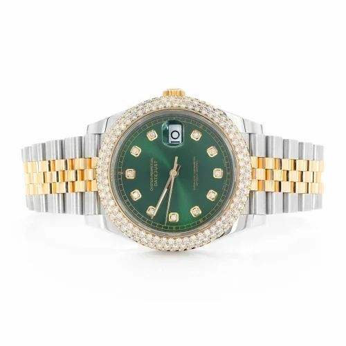 Luxury Moissanite Diamond Watch Green Dial Two Tone Gold Silver Automatic Mechanical Stainless Steel Hip Hop Wristwatch