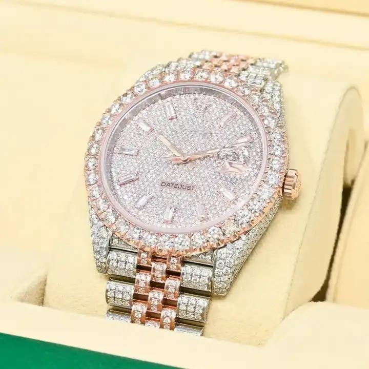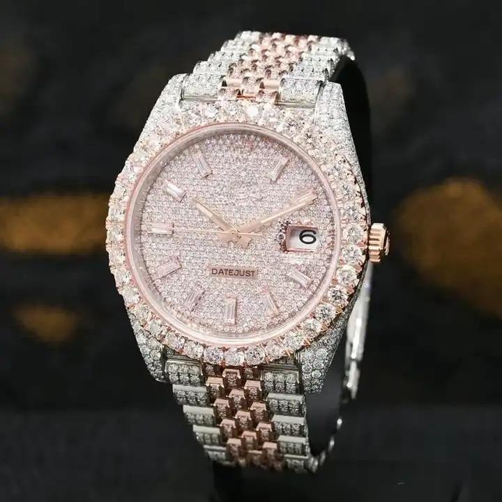Luxury Moissanite Diamond Watch for Men Full Pave Setting Rose Gold Autos Steel Case Hip Hop Iced Out Fashion Business Timepiece