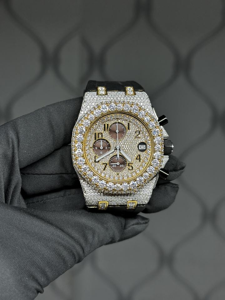 Luxury Moissanite Iced Out Chronograph Watch Gold Silver Tone Fully Paved Dial Bling Statement Hip Hop Timepiece