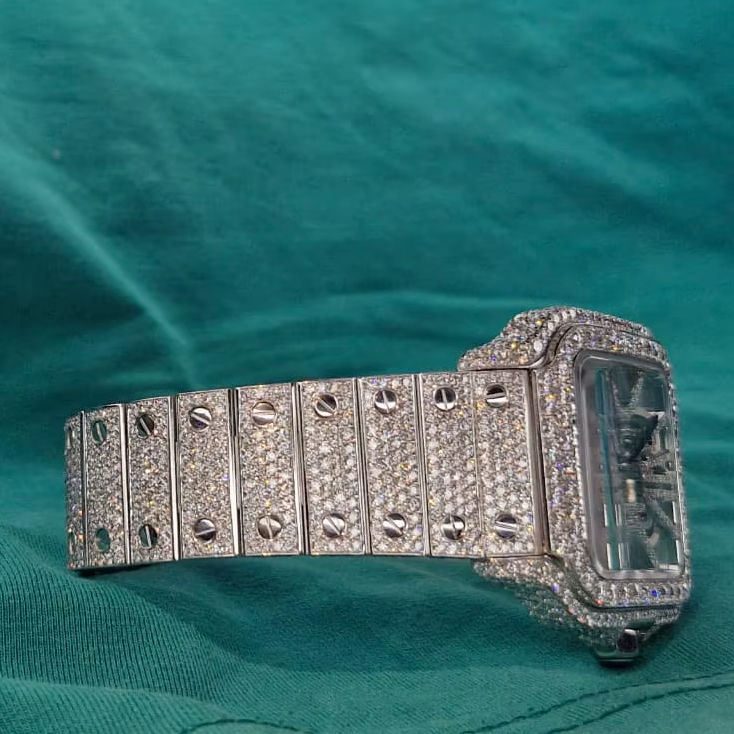 Luxury Moissanite Watch Classic Square Full Diamond Watch Hip Hop Ice Out Cuban Chain Watch Best-Selling Trendy Skeleton Watch