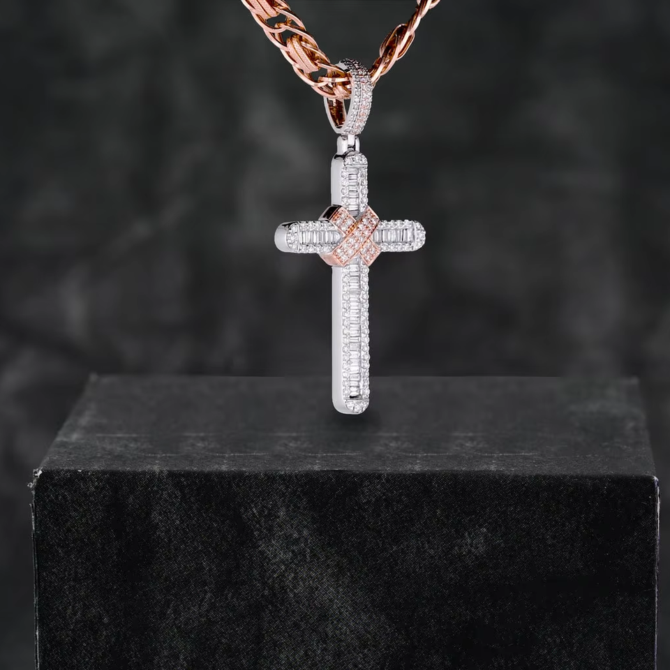 Luxury Moissanite diamond Cross Pendant 925 Sterling Silver \Rose Gold plated Hip Hop Jewelry Available at Affordable Price