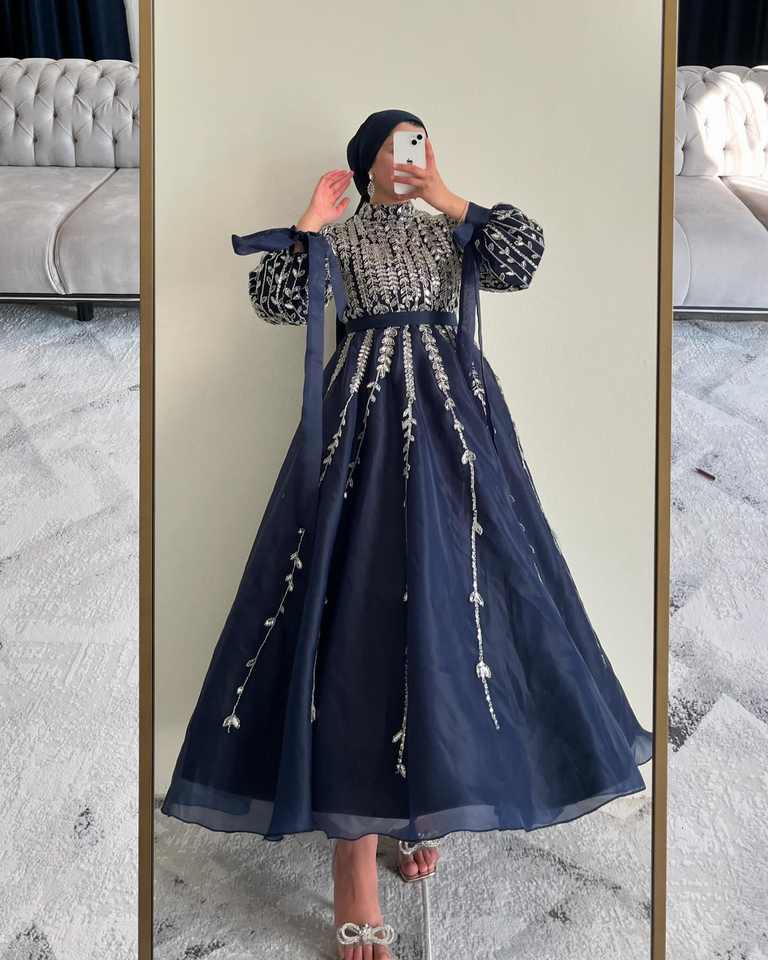 Luxury Moroccan Evening Party Dress Elegant Formal Maxi Bridal Gown Fine Embroidery Short Sleeves Bow Collar Prom Dresses Ruched
