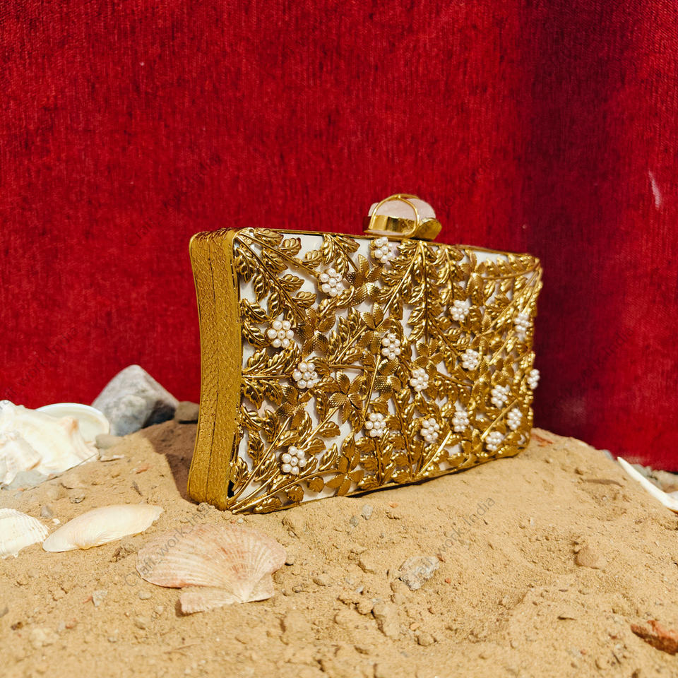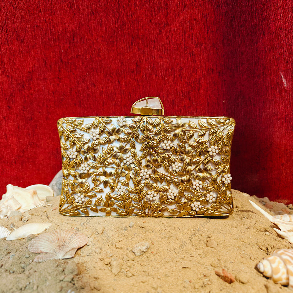 Decoration:Gold floral vine metalwork pearl bead embellished