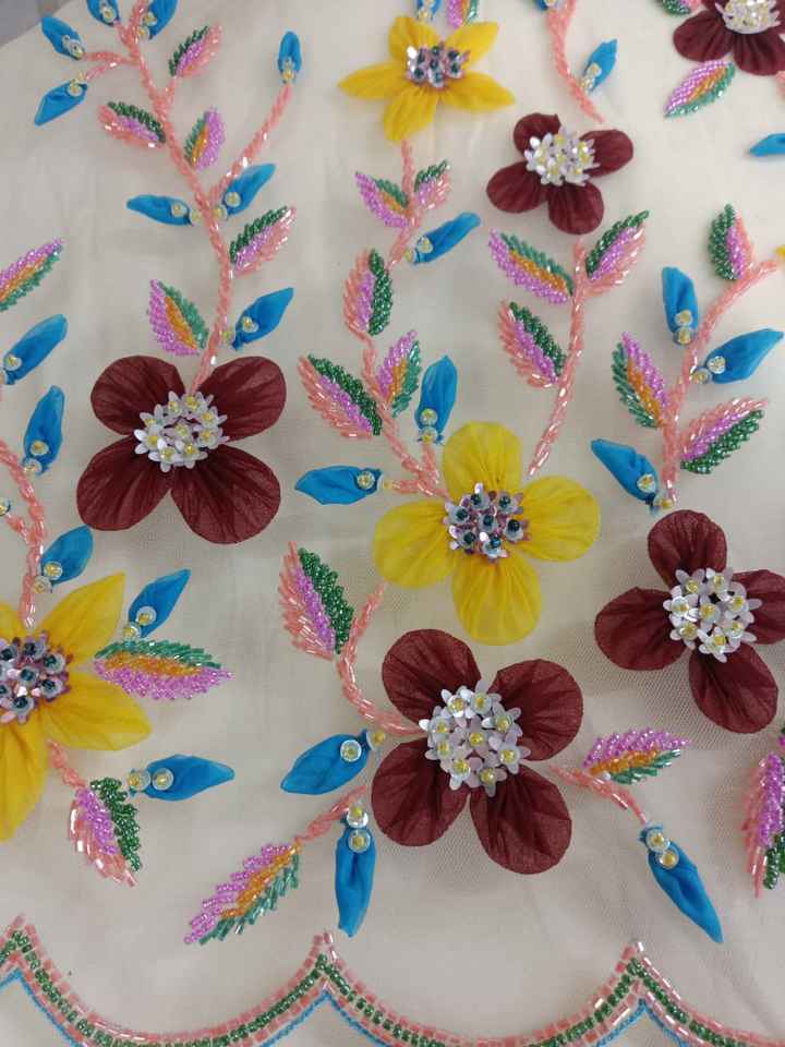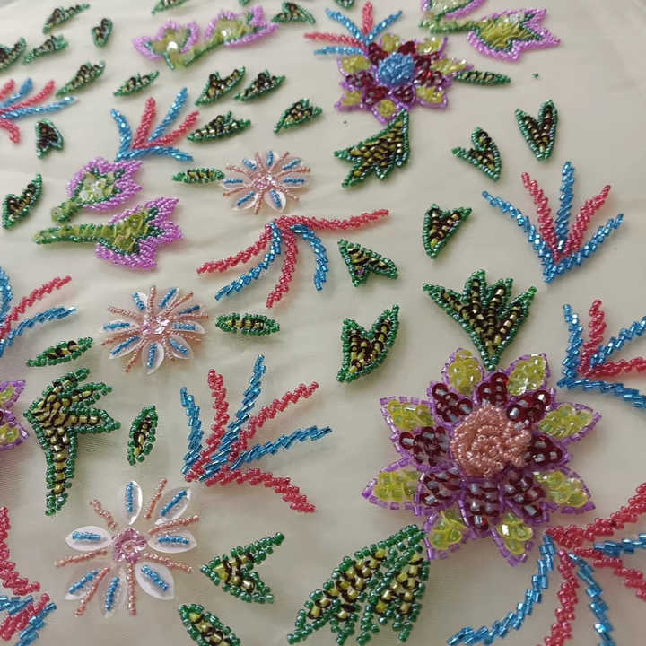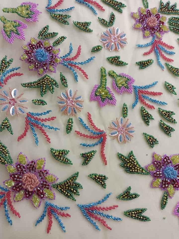 Luxury Multi-Color Beaded Embroidery Fabric Floral Motif Seed Beads Work High-End Garment & Gown Fabric