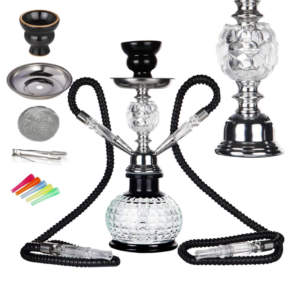 Luxury Multi-Color Green Glass Hookah Set 2 Hoses Stainless Steel LED Material Frosted Technics Custom Logo Gift Box Smoking