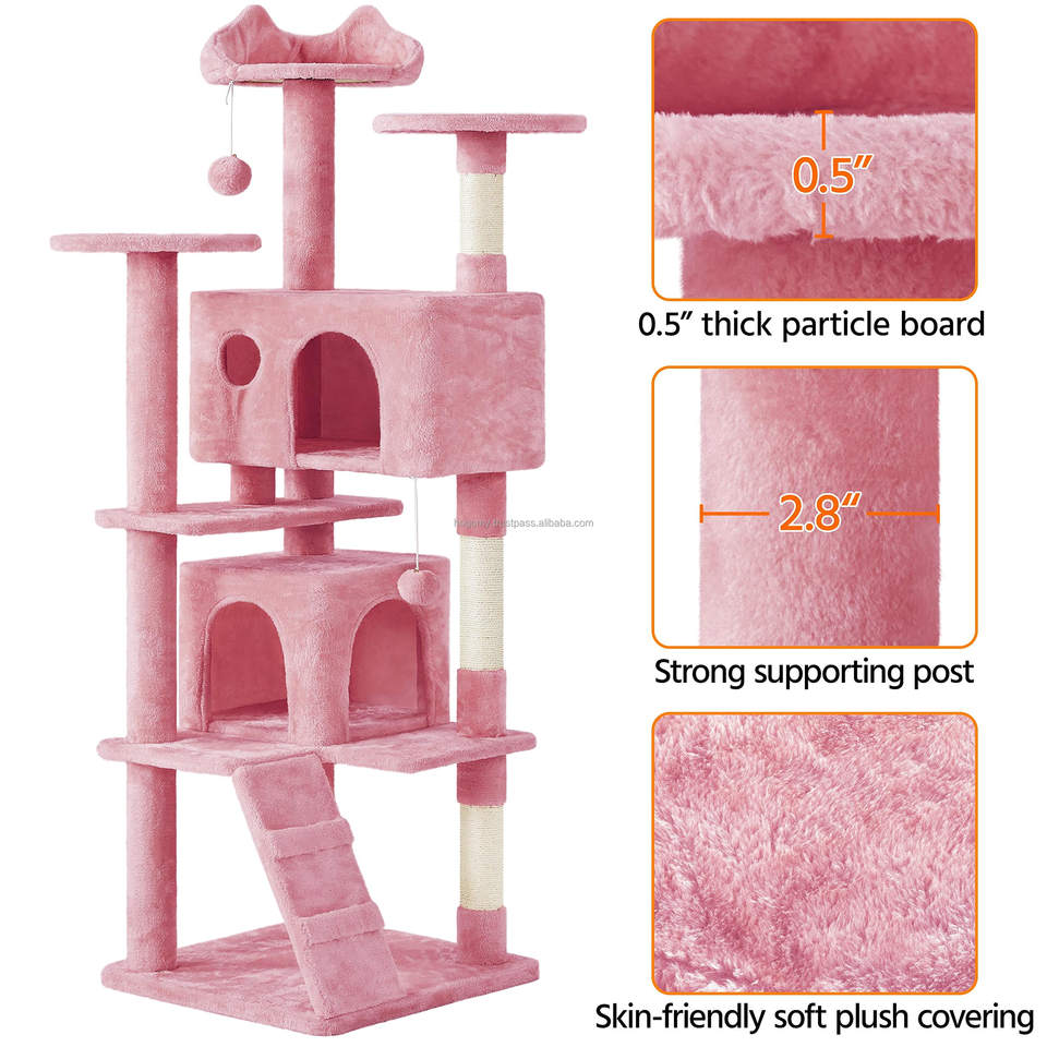 Luxury Multi-Level Wood Cat Tower Large Cat Condo Climbing Frame Scratching Posts Eco-Friendly Indoor Activity Center for Cats