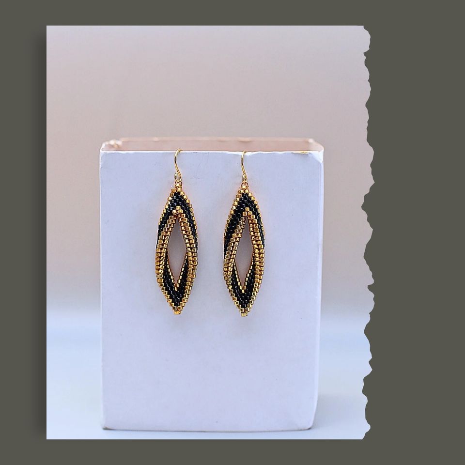 Luxury Ethnic Namayo Hand Beaded Drop Earrings Geometric Design 304 Stainless Steel 24k Gold Plated Lightweight Daily Wear