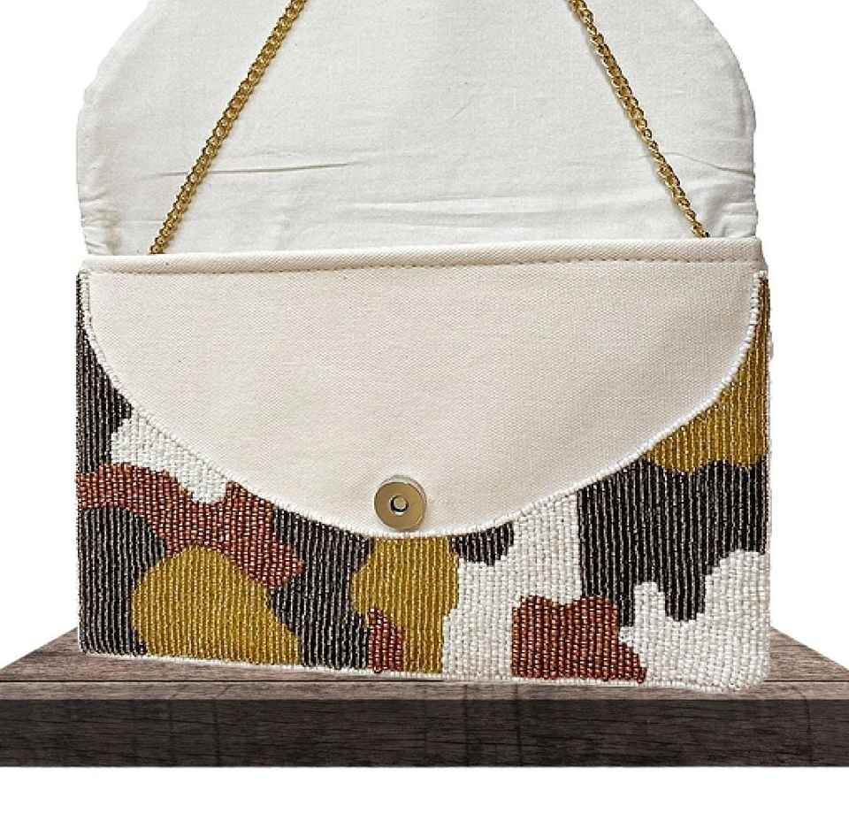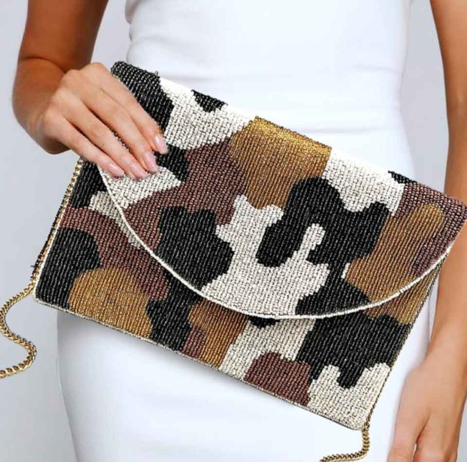 Luxury Natural Neutrals Black Gold Camo Beaded Clutch Bag Crossbody Chained Fashionable Envelope Crystal Striped Evening Bags