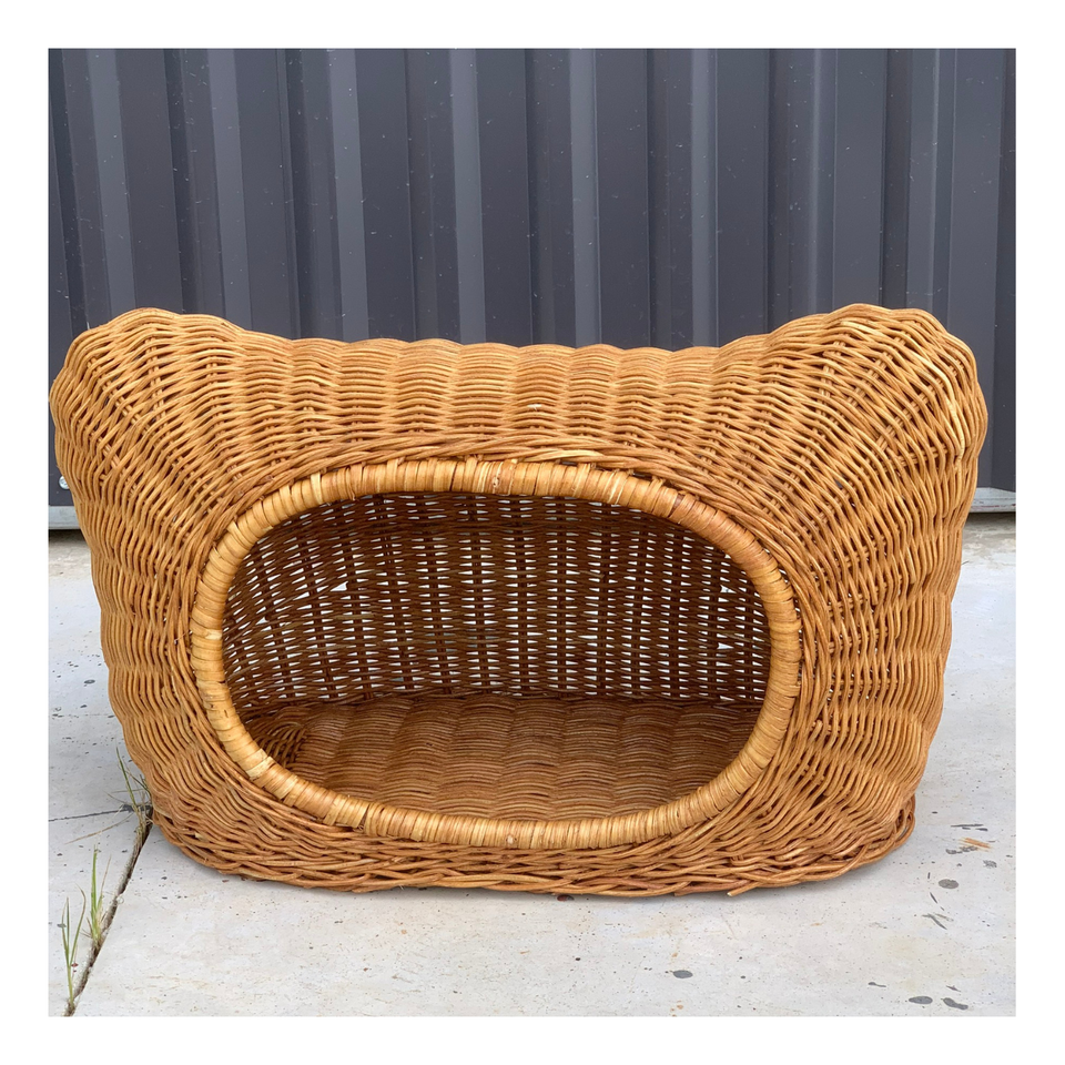 Luxury Natural Rattan Pet Bed Basket with Detachable Pillow, Stylish and Durable Sleeping Place for Small Dogs and Cats
