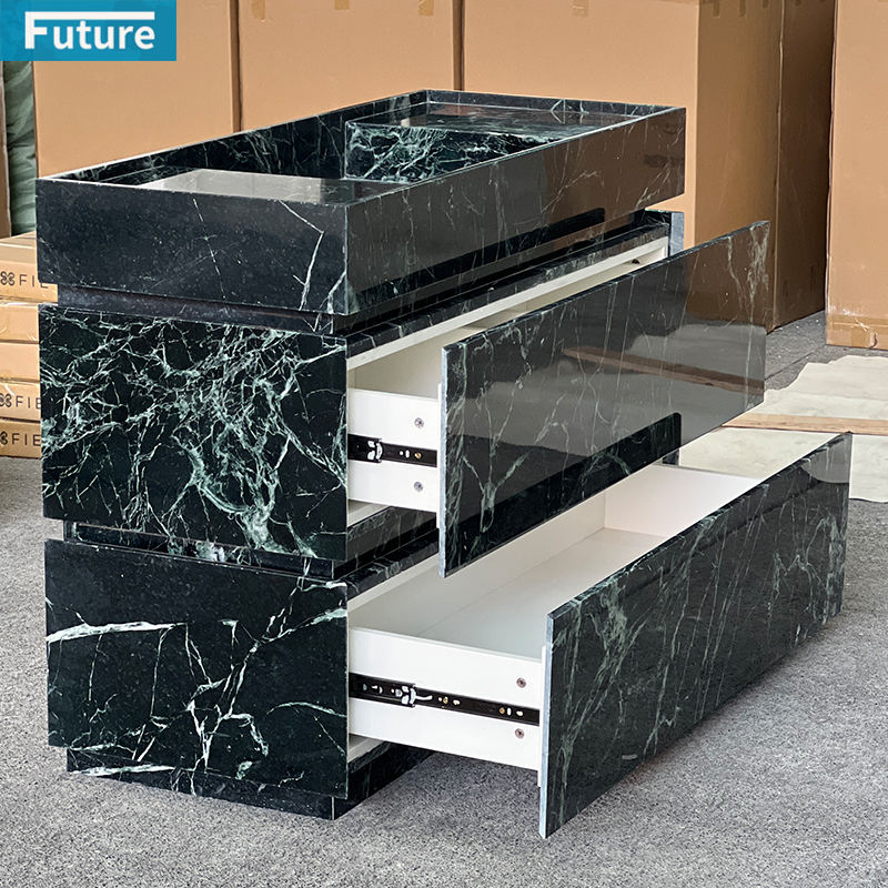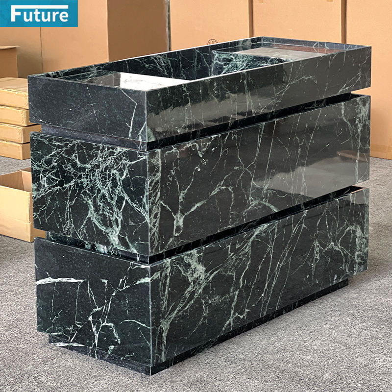 Luxury Natural Stone Verde Calacatta Green Marble Bathroom Vanity with Two Drawer for Hotel Villa Mansions Apartment Bathroom
