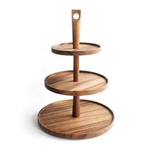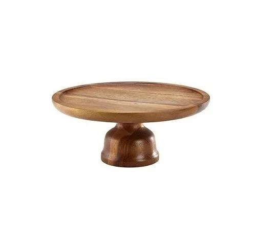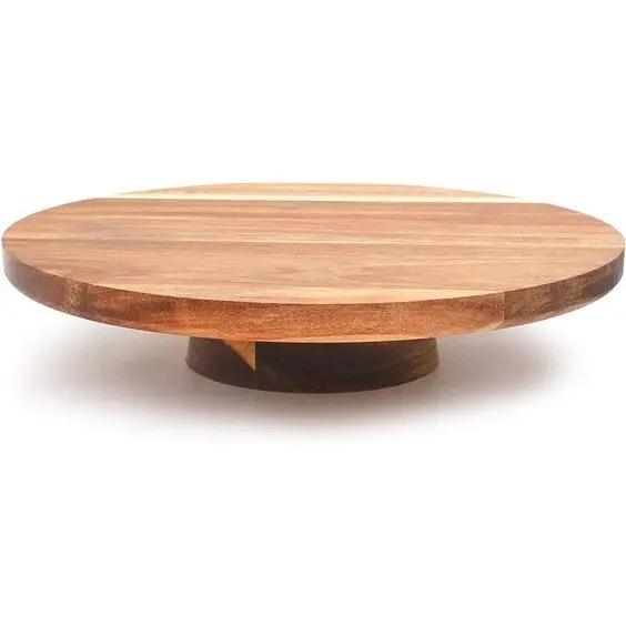 Luxury Natural Wood Cake Stand Acacia Wood Rotating New Design Cake Stand Acacia Wood & Leaf Design Metal Rode Stand From SCI
