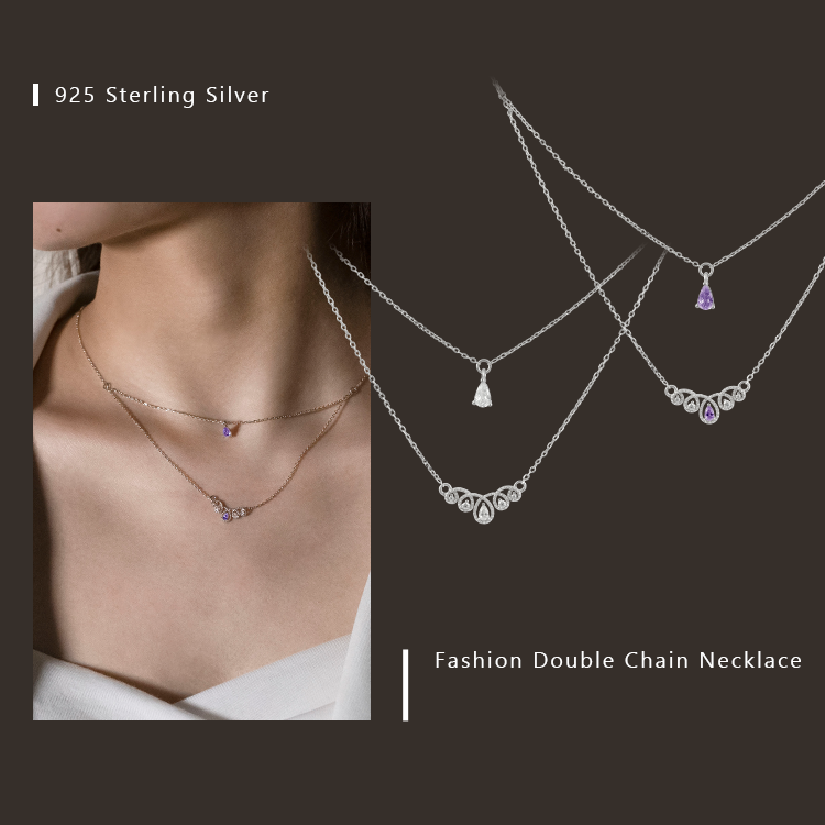 Luxury Women's Classic Zircon Sterling Silver Clover Layer Pendant Necklace for Party Occasions
