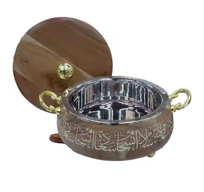 Luxury New Design Mango Wood Casseroles with Premium Gold Plated Lid Hotpot and Food Warmer for Serving Food