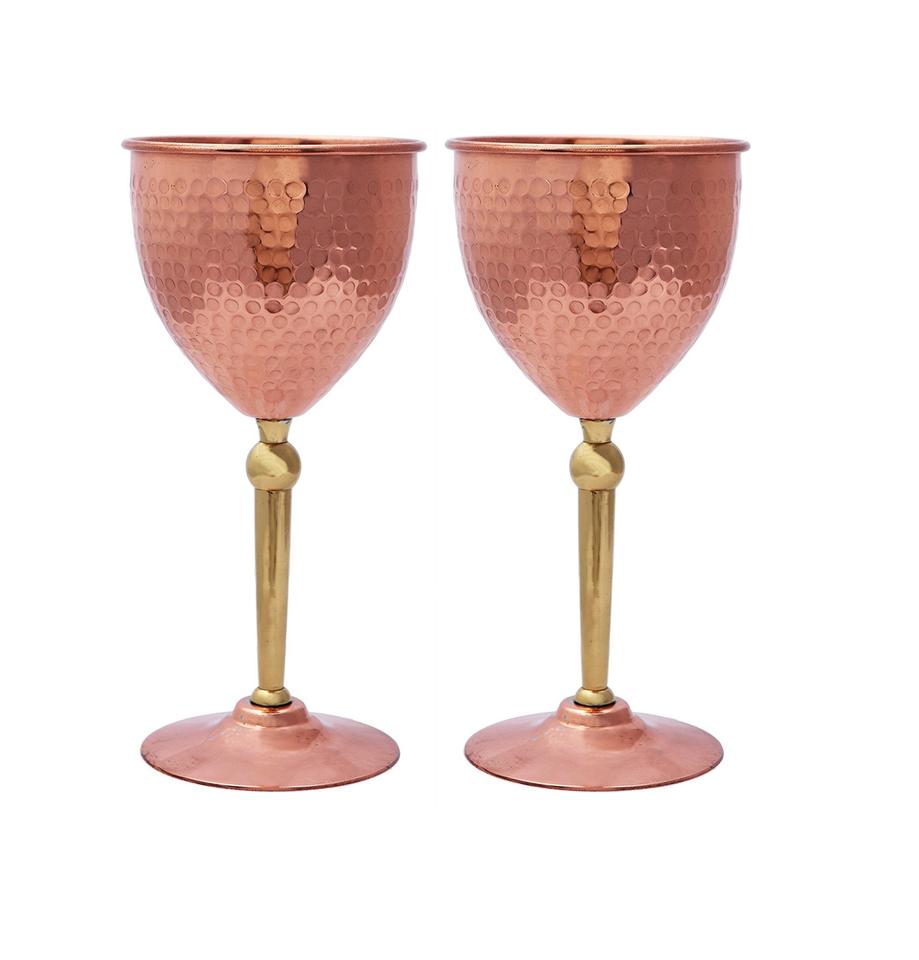 Luxury New Stainless Steel Wine Glasses Copper Plated Metal Set of 2 375 ml Wine Flute Drink Glass